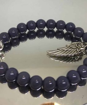 Charcoal grey bracelet with silver angel wing.