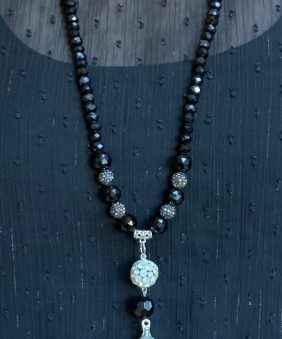 Black crystal tassel necklace with silver