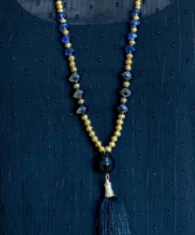 Black crystal tassel necklace with gold